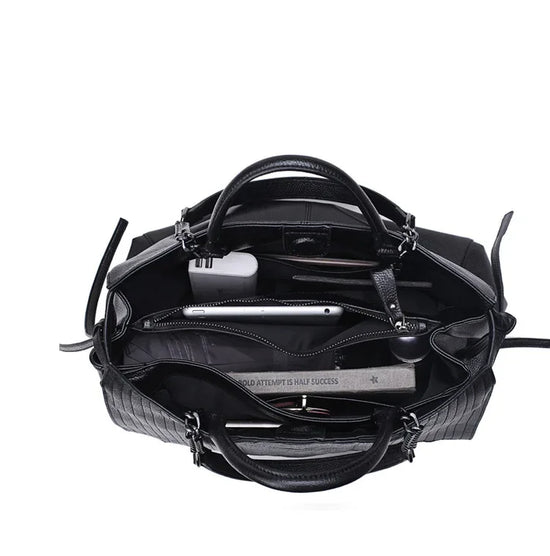 Partez à la conquête du monde avec style grâce à notre sac fourre-tout de voyage conçu spécialement pour les femmes actives et élégantes. Ce sac en simili cuir noir, avec son esthétique luxueuse et son motif écaille sophistiqué, est l'alliance parfaite entre mode et fonctionnalité pour toutes vos escapades.